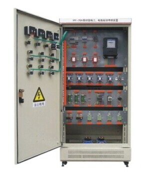 該裝置按標(biāo)準(zhǔn)電氣控制柜設(shè)計(jì)制造規(guī)格,充分利用雙面位置,柜內(nèi)裝有完成各種照明電路所需的單相電度表、日光燈、單聯(lián)開關(guān)、插座、感應(yīng)開關(guān)、漏電開關(guān)等,以及電氣控制所需要的多種低壓電器,如漏電斷路器、熔斷器、電流互感器、交流接觸器、時(shí)間繼電器、熱繼電器、中間繼電器、行程開關(guān)、按鈕、信號(hào)燈、轉(zhuǎn)換開關(guān)、電壓表、電流表、功率表及電度表等,為了延長(zhǎng)電器使用壽命,各電器的接點(diǎn)都與接線端子相連,再由接線端子與被控制電氣連接。