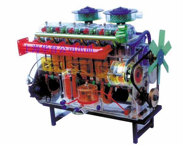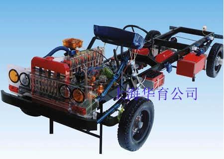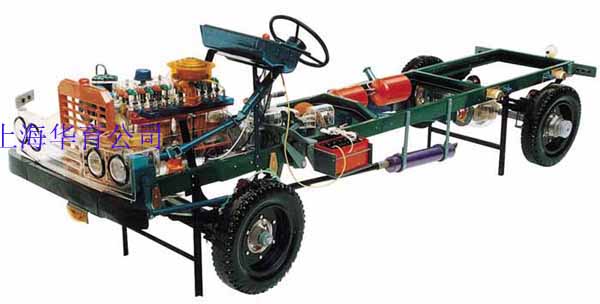 本品選用透明有機玻璃制作,內(nèi)中部件均以硬質(zhì)塑料料加工,用 螺絲固定在金屬高溫烘漆而成的車架上。各總成部分都以壓模成形加 工,代替過去膠粘合的方法,使產(chǎn)品在強度上有很大提高。發(fā)動機總成用電機驅(qū)動,在油門處設有調(diào)速裝置,能演示發(fā)動機轉(zhuǎn)速高低。離合器分離明顯,操縱靈活,離合器外殼整體壓模而成,變速箱和各檔齒輪用各種顏色表示,換檔靈活,手制動美觀。后橋外形壓模而成,內(nèi)中主減速、差速轉(zhuǎn)動自如,輪轂剎蹄壓模成型,剎蹄可調(diào)節(jié),前橋輪鼓可調(diào)整,轉(zhuǎn)向裝置以及電瓶、油箱、水箱,制動管路分布清楚一目了然。電路采用對插件前后分布,燈架、風窗、儀表板、后燈架用透明有機玻璃壓模成整體美觀逼真。